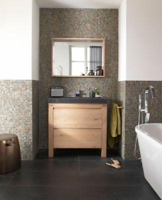Meuble sous vasque à poser chêne massif et plaqué chêne l.90 cm + plan vasque en quartz composite noir, Cooke & Lewis Harmon
