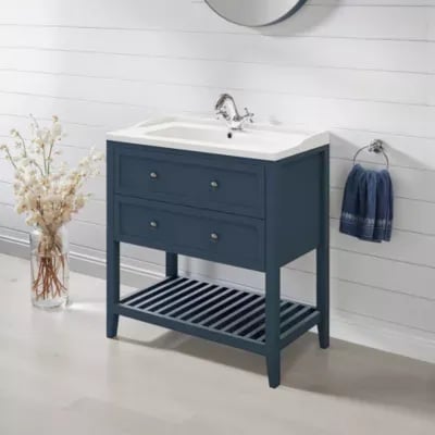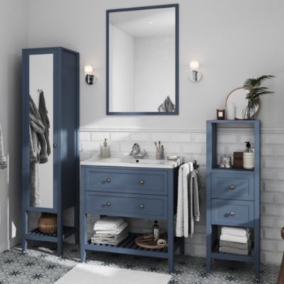 Meuble sous vasque à poser 2 tiroirs 1 niche bleu mat l.80 cm + plan de toilette, GoodHome Perma