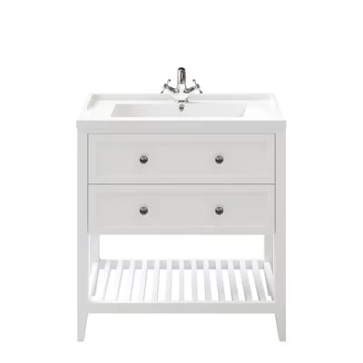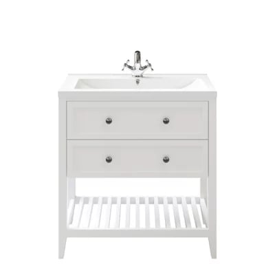 Meuble sous vasque à poser 2 tiroirs 1 niche blanc mat l.80 cm Perma + plan vasque céramique blanc Nira , GoodHome
