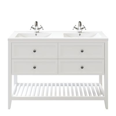 Meuble sous vasque à poser 4 tiroirs 1 niche blanc mat l.120 cm Perma + plan double vasque Nira, GoodHome