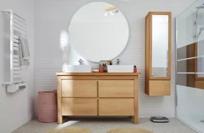 Meuble sous vasque à poser chêne massif et plaqué chêne l.140 x H.84,5 x P.50 cm, Cooke & Lewis Harmon