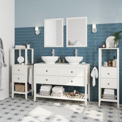 Meuble sous vasque à poser 2 tiroirs 1 niche blanc mat l.60 cm, GoodHome Perma