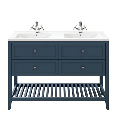 Meuble sous vasque à poser 4 tiroirs 1 niche bleu mat l.120 cm Perma + plan double vasque Nira, GoodHome