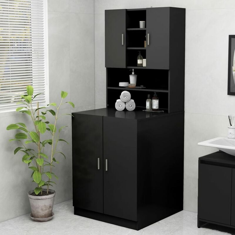 Maison Chic - Meuble machine à laver Meuble pour wc Noir 64x24x190 cm 52742