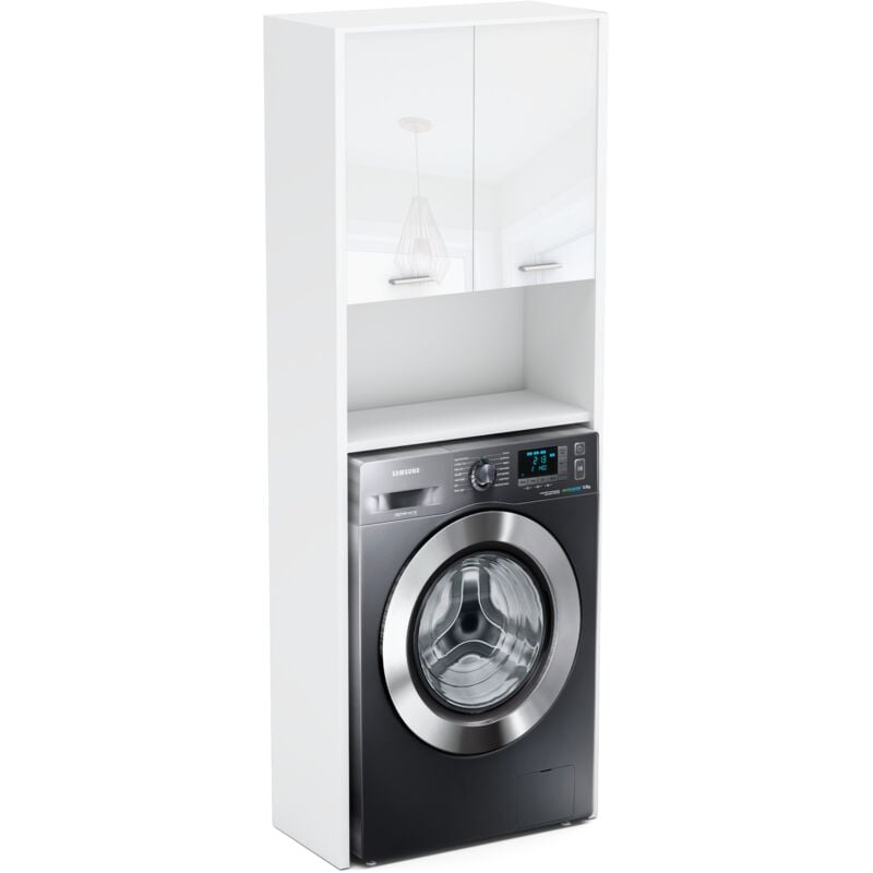 Meuble au-dessus de la machine à laver 65x32x195 cm blanc dentelé avec deux portes et deux étagères - Faggio