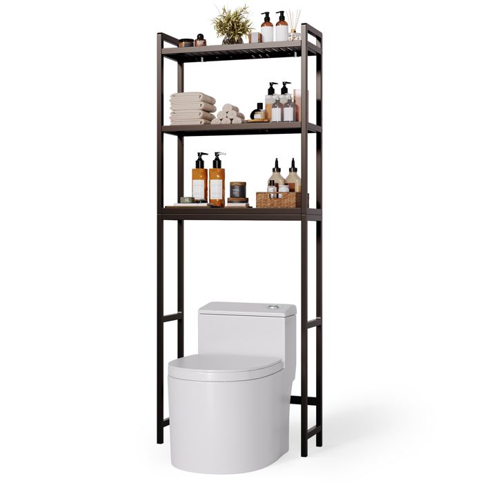Meuble WC ou Machine à Laver - Bealife - Étagère Rangement sur Pied - Bambou - 3 Niveaux - Anti-basculement - Salle de Bain Noir