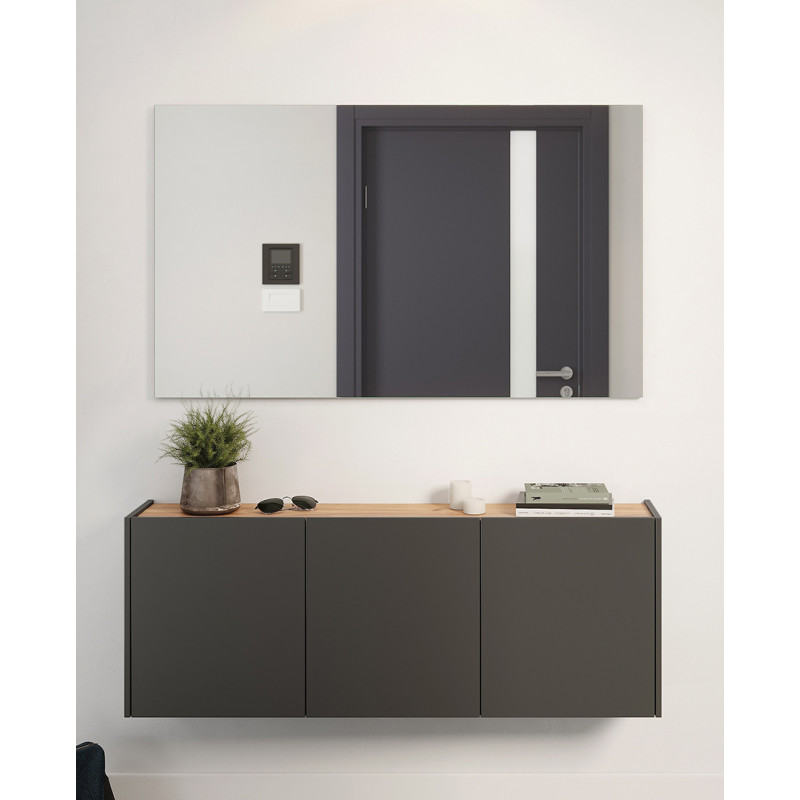 Meuble d'entrée suspendu moderne H 52 cm graphite/chêne Lidy Graphite/chêne