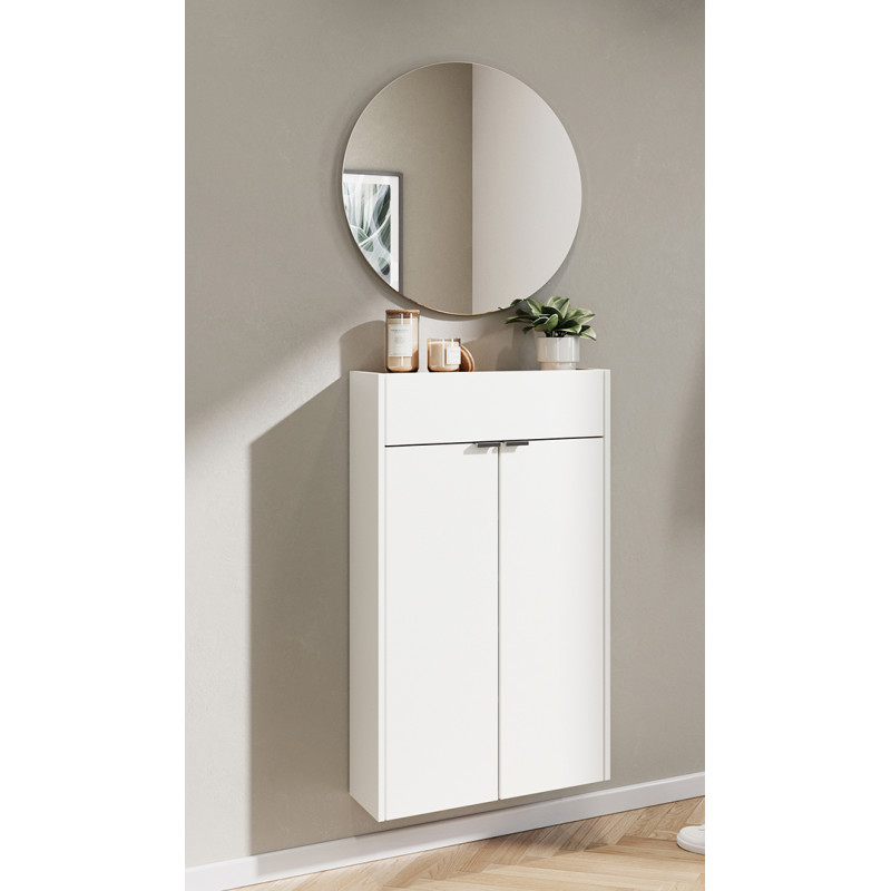 Meuble d'entrée suspendu moderne 56 cm blanc/chêne Alesine Blanc/chêne