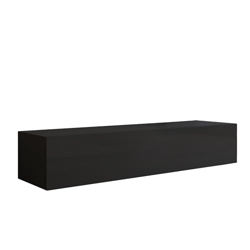 MB Muebles Bonitos, Meuble TV Mural Luke H2 pour Salon Moderne, Meuble Suspendu au Mur, Design Modulaire avec Porte Abattante, Mélamine Brillante, Noir, 160x30x40 cm