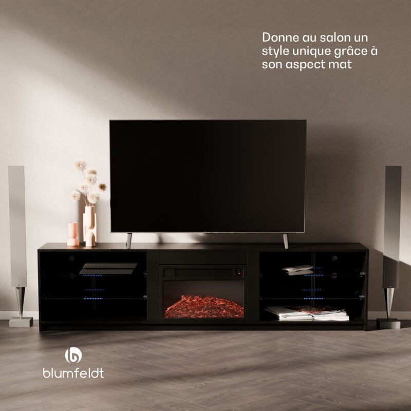 Blumfeldt - Klarstein Meuble tv Bois avec Cheminée Electrique Intégrée, Meuble Tele de 160 cm, Design Moderne avec led Multicolores, Meuble bas tv