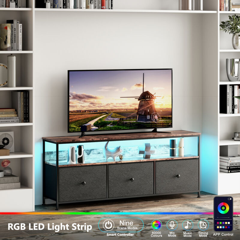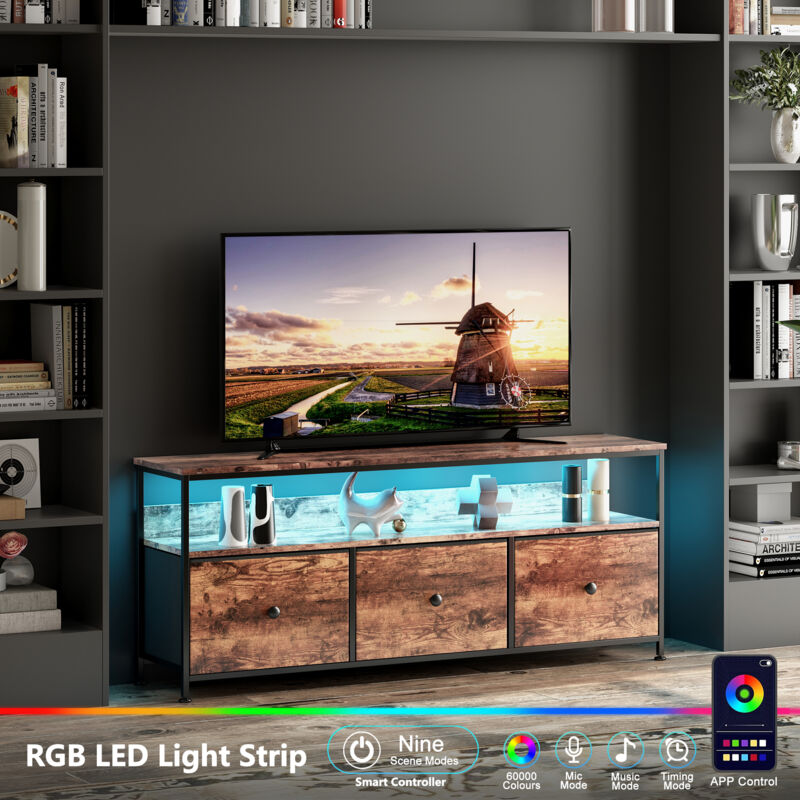 Meuble tv, Meuble tele, Meuble cuisine, Meuble de rangement, Design Moderne en Tiger Oak avec Éclairage LED Intégré et Tiroirs en Tissu Marron,