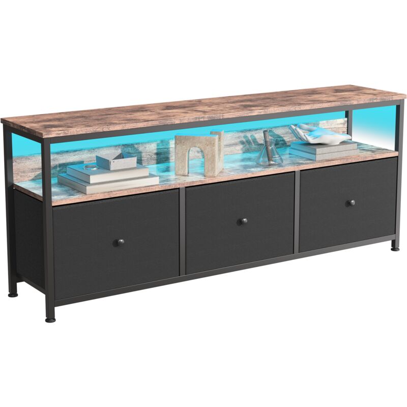 JOOKGBD - Meuble TV 108x30x57 cm avec LED,Meuble TV Industriel avec 3 Tiroirs,Table TV Salon Meuble Tele,Bois Banc TV Tissu Tiroirs,Cadre en Acier