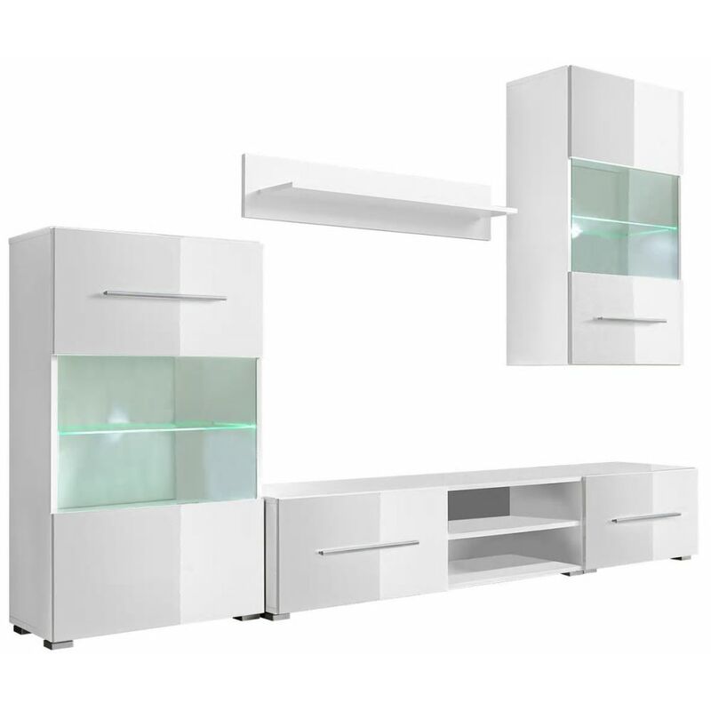 Helloshop26 - Meuble télé buffet tv télévision design pratique mural avec éclairage led 5 pièces blanc