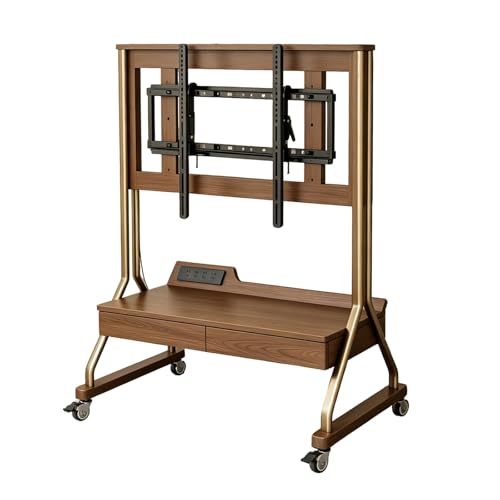 NRNQMTFZ Support TV roulettes avec Pied en Bois pour TV de 40 à 85 Pouces,Hauteur réglable,Chariot TV Meuble Télé Support avec étagères,Peut être Incliné de ±12°,pour la Maison, Le Bureau
