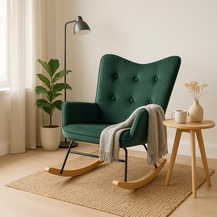 URBAN MEUBLE - Fauteuil - Style Scandinave - En velours vert - Avec pieds en bois clair
