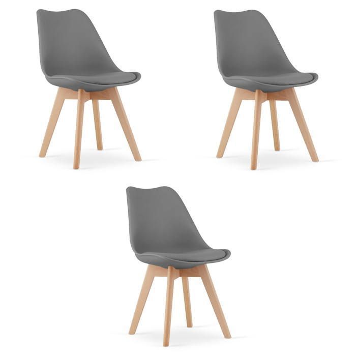 MADAME MEUBLE Lot de 3 chaises de salle à manger MARK Pieds en Bois Massif Scandinave ANTRACITE H: 82 x L:49 x P: 52 cm