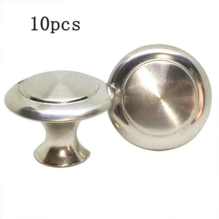 10x Bouton de Tiroir Metal Boutons de Porte de Placard de Cuisine en Aspect Inox Satiné Ronde Argent Poignée de Meuble