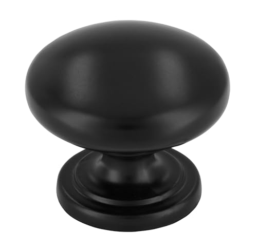 SIRO Bouton de meuble, de tiroir, d'armoire, de style maison de campagne, rond, avec vis, en métal, noir mat, Ø 33 mm, 1 pièce