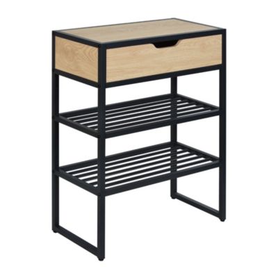 Meuble rangement chaussures en métal noir et bois 2 étagères et tiroir Homesight Wilko