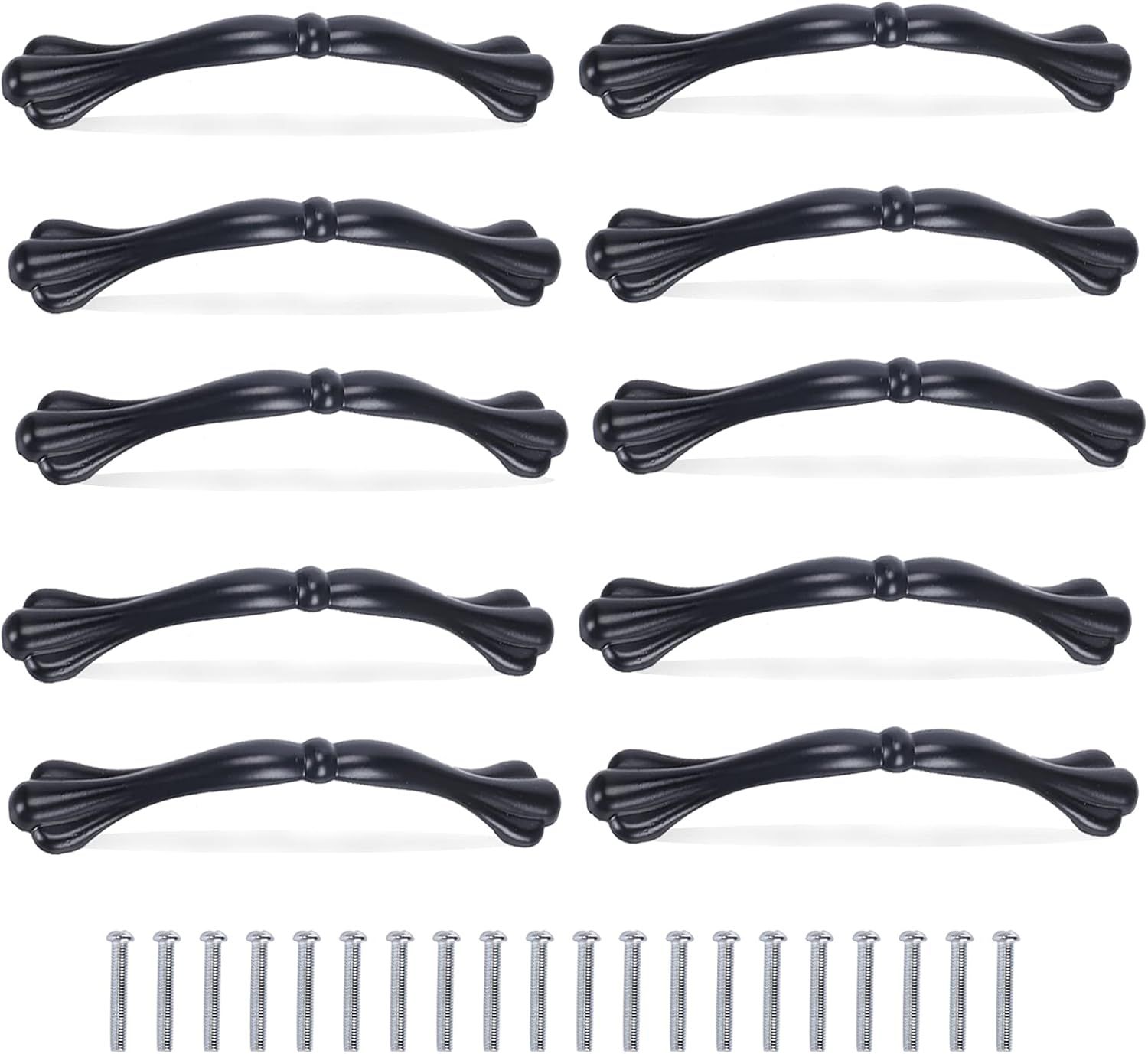 Transino Boutons de Porte Lot de 10 Poignées Boutons de Meuble Vintage Boutons de Tiroir Metal Coquille et Bouton de Meuble pour Placards Armoire Commode Tiroirs Noir