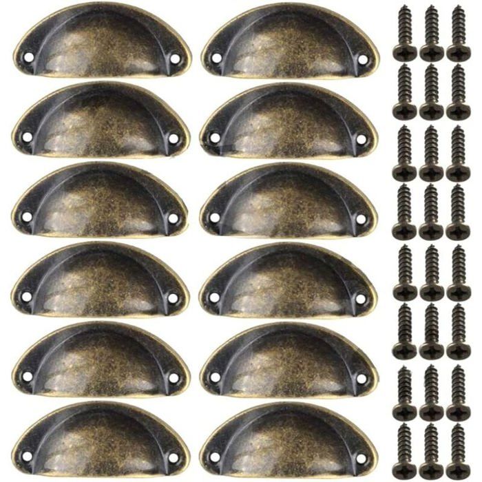 12pcs Poignées de Meuble Vintage Boutons de Tiroir Metal Coquille pour Armoire Commode Cuisine Tiroirs Laiton Antique 81x35mm