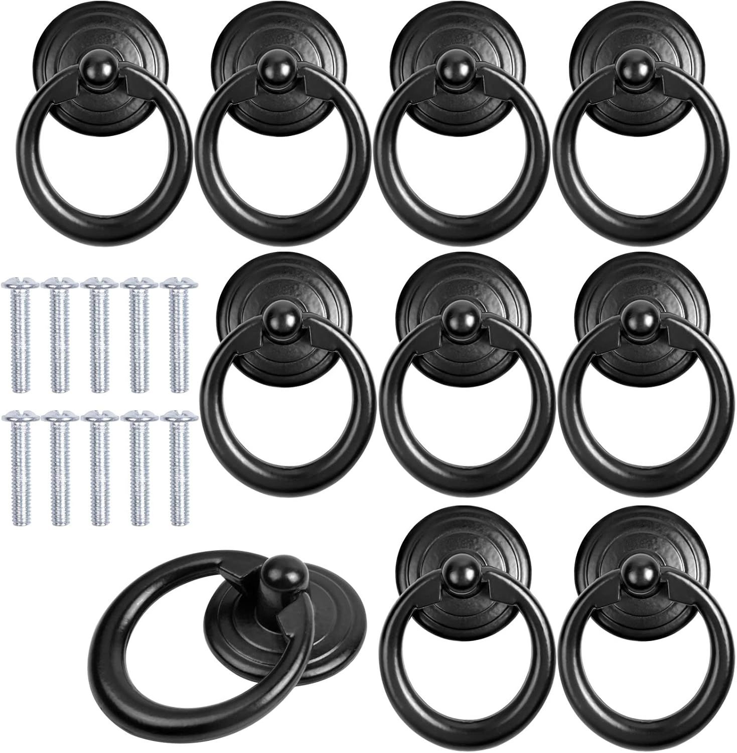 TIANYI-10 Pcs Noir Poignée d'Armoire Metal Bouton de Porte Tiroir Bague Poignée de Traction Classique Poignee de Meuble Rond Bouton de Meuble Poignées de Tirage avec Vis pour Armoire Placard Commode