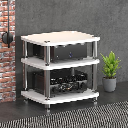 Support Multimédia 2 3 4 Niveaux Meuble Multimédia Audio Vidéo Meuble TV D’Angle, étagères D’Angle en Bois, Support Stéréo Moderne, Armoire De Rangement Multimédia Robuste, 3Tier