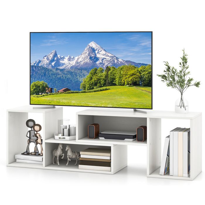 COSTWAY 60 Meuble TV 2 Pcs Modulaires Meuble TV Angle pour Recoin Combination Libre Meuble TV Angle pour Salon Chambre Blanc