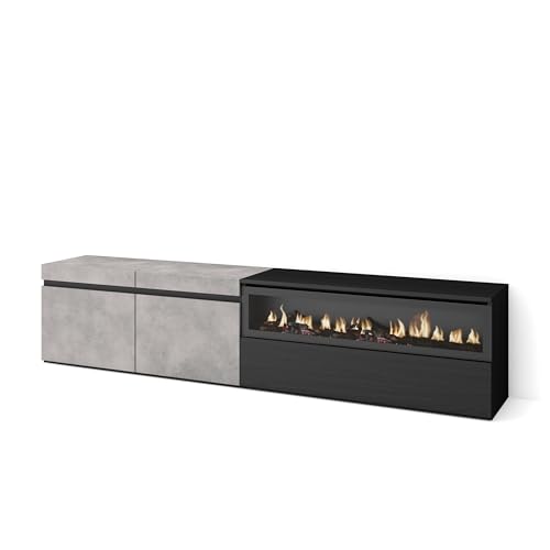 Skraut Home | Meuble TV | Banc Télé | Grand Espace de Rangement | 288x57x35 cm | TV Grand Format | Cheminée électrique XXL | Design Industriel | Style Moderne | Ciment