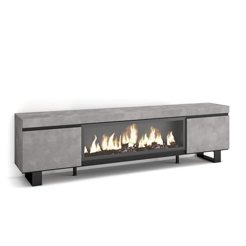 Skraut Home | Meuble TV | Banc Télé | Grand Espace de Rangement | 200x45x35cm | pour Les TV jusqu'à 80" | Cheminée électrique | Style Moderne | Ciment