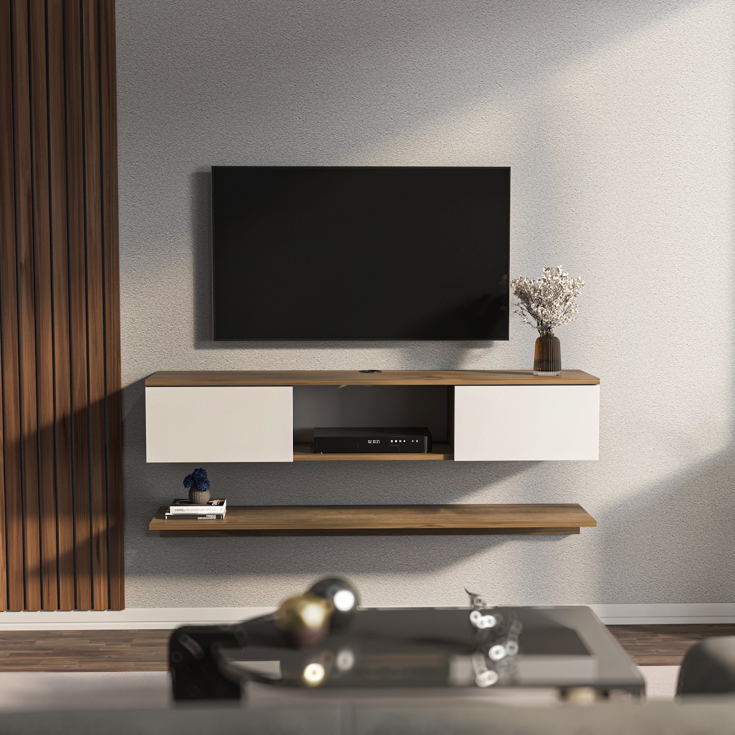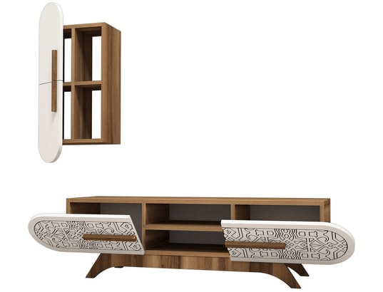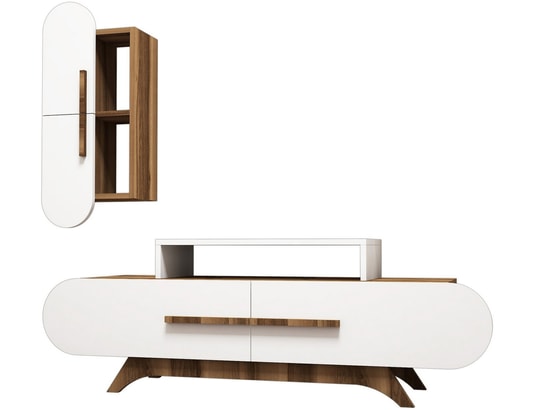 Meuble TV blanc et noyer