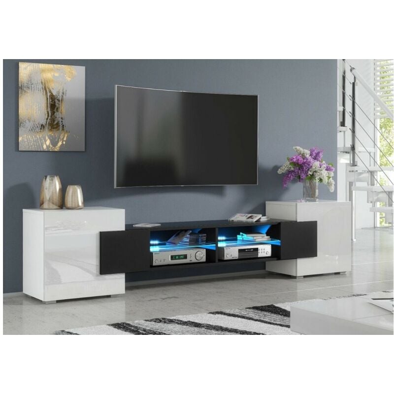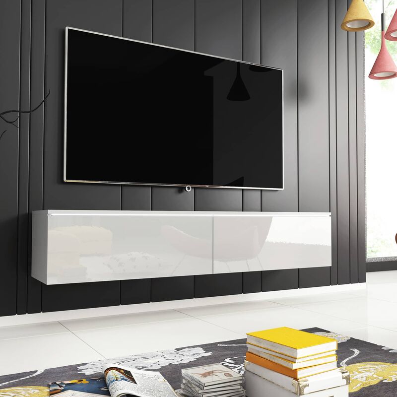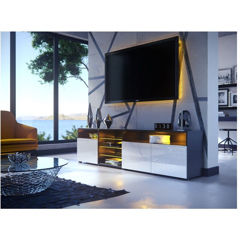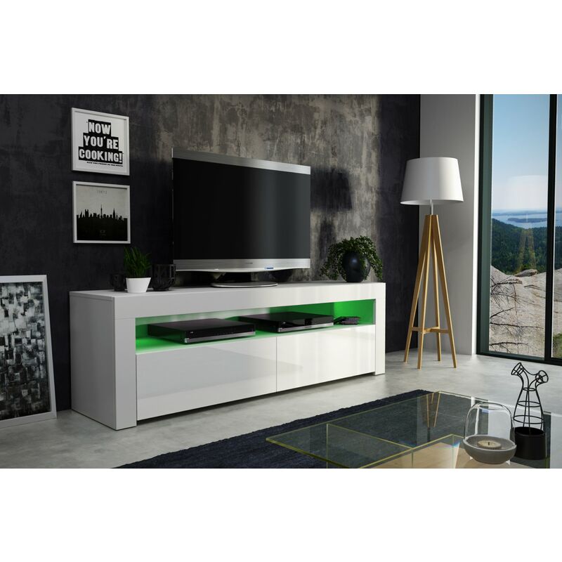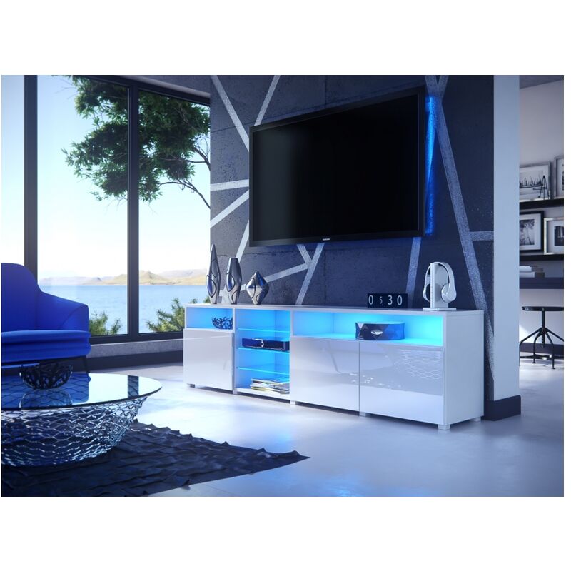 Meuble TV blanc laqué 200 cm