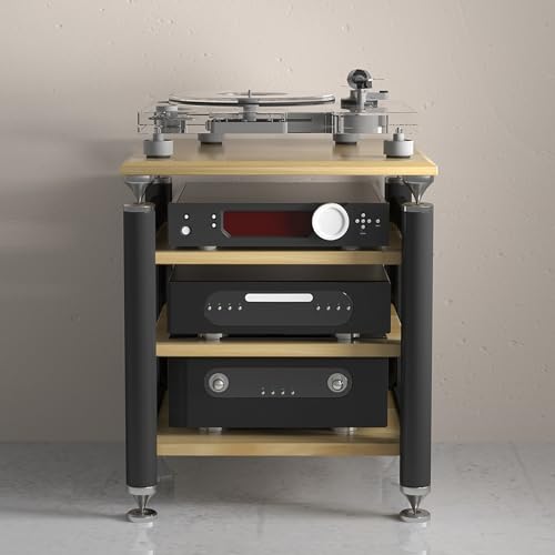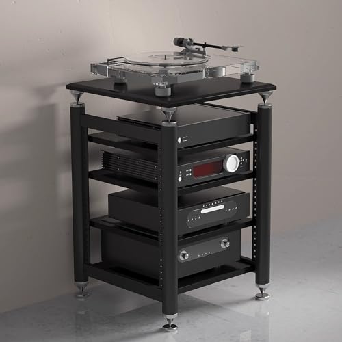 Meuble AV à 5 Niveaux avec roulettes, Support d'angle en Bois, Meuble TV Moderne, Support Robuste de Type Tour pour amplificateur Audio Haute fidélité/Platine Vinyle.