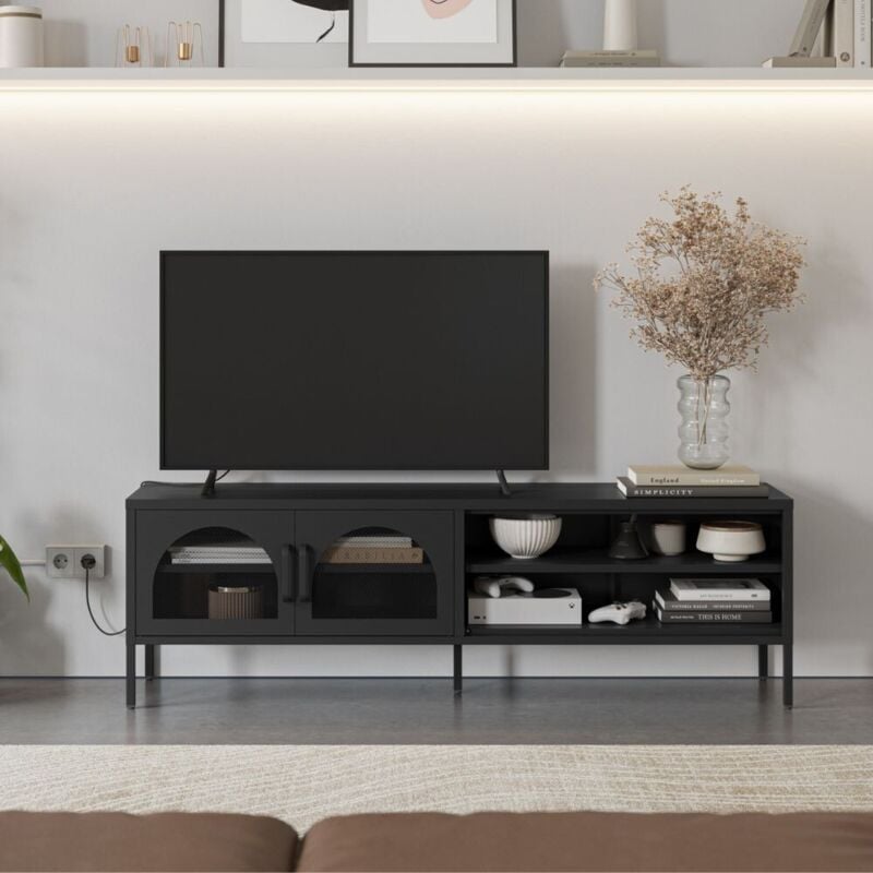 Drawer - Meuble tv 4 portes en métal L180cm - Noir - Zio