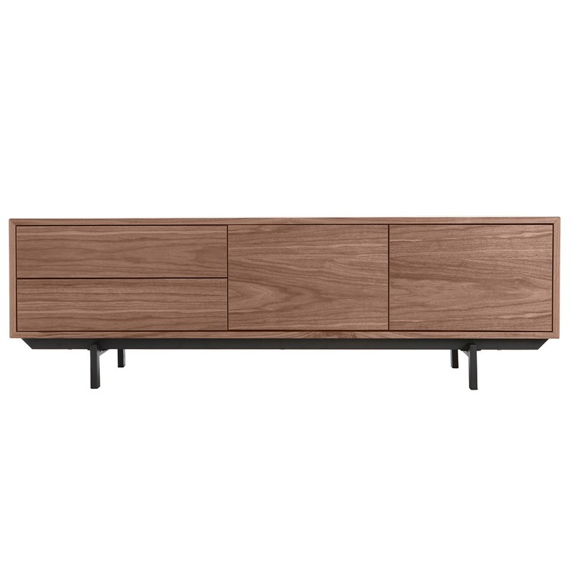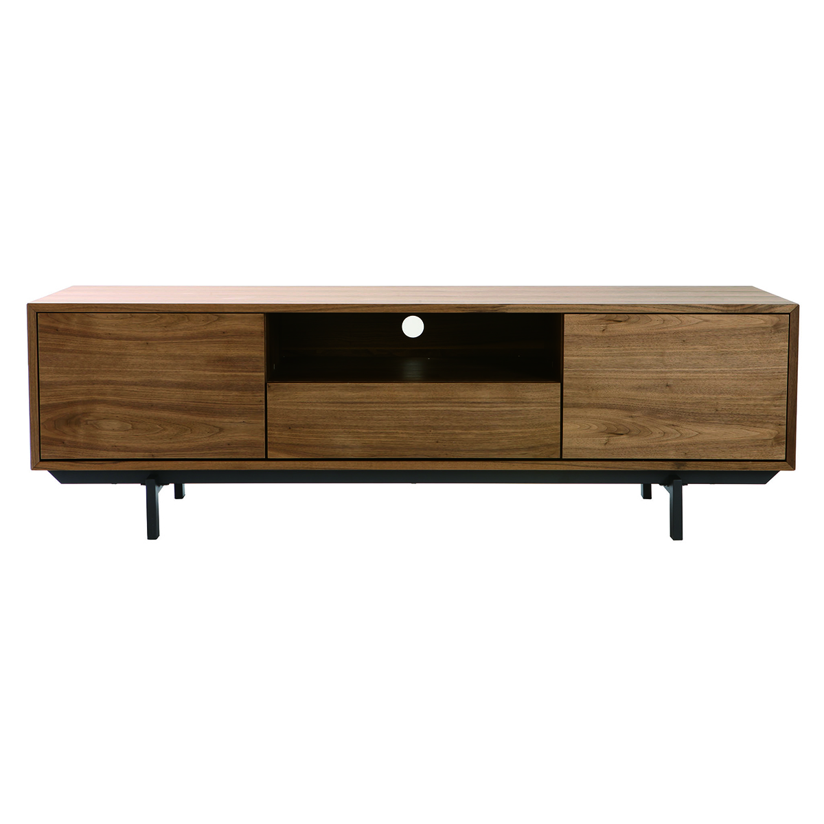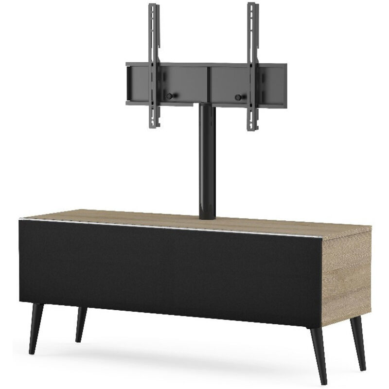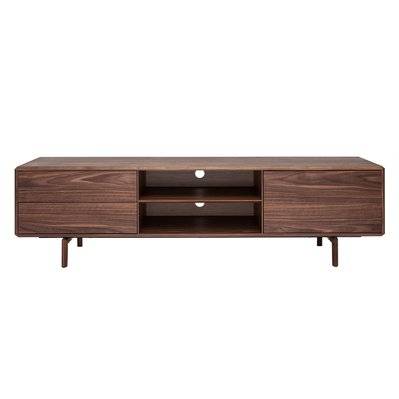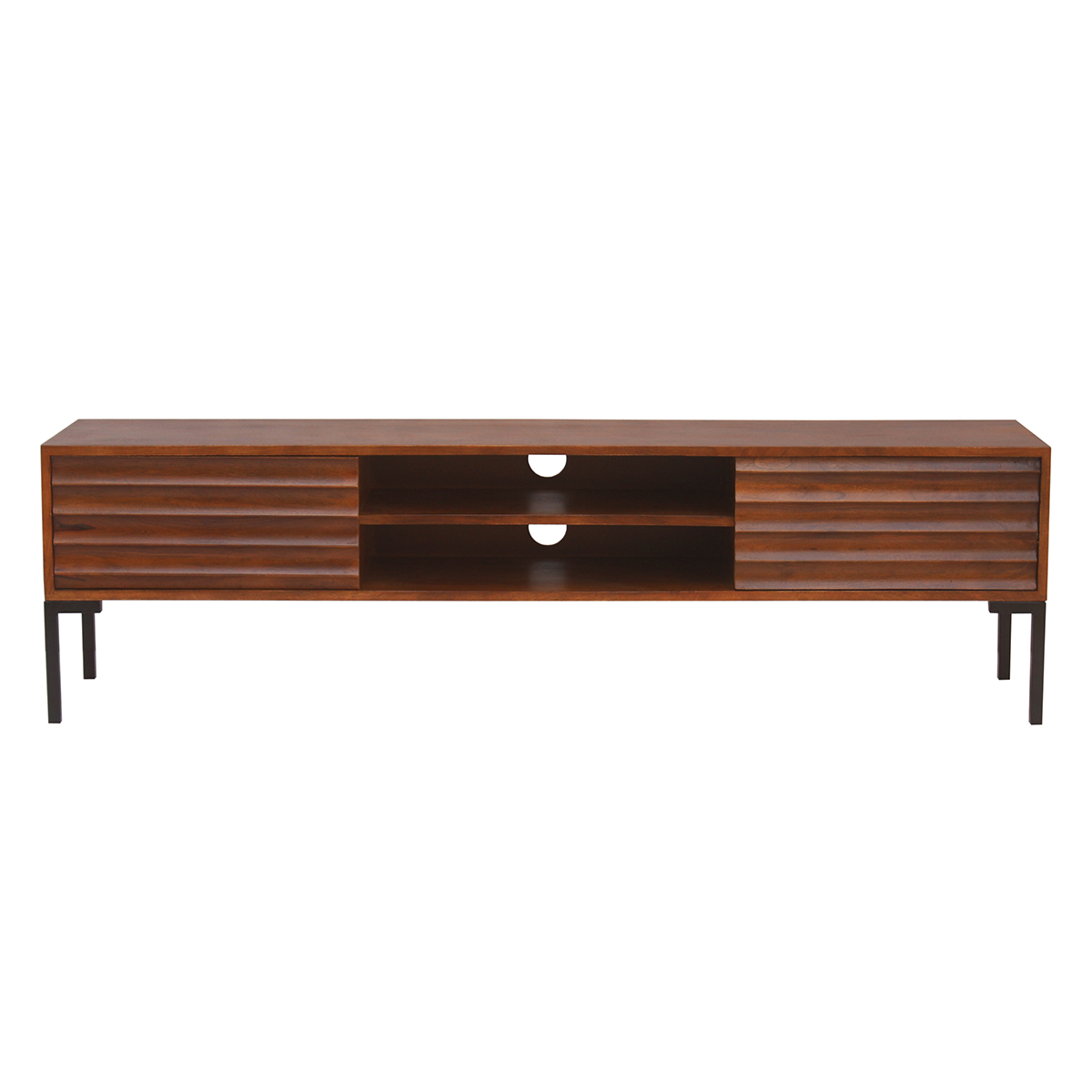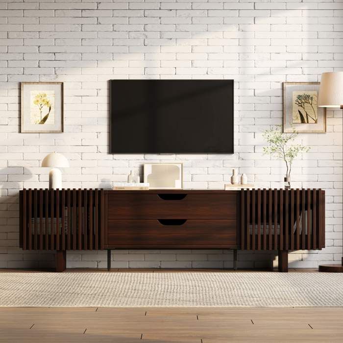 Meuble TV moderne, meuble extensible, design grain de bois, bord en PVC, 58*129-200*30cm, bois foncé
