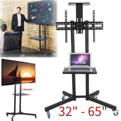 Support TV Sur Pied Chariot Meuble Mobile pour Téléviseur avec Roulette 32 à 65" Noires