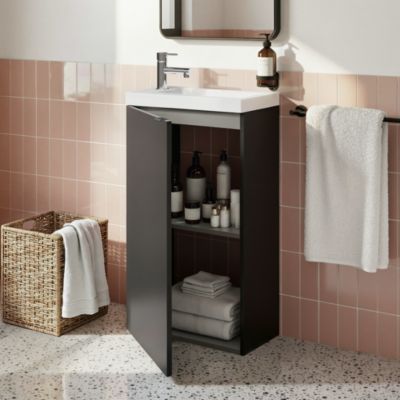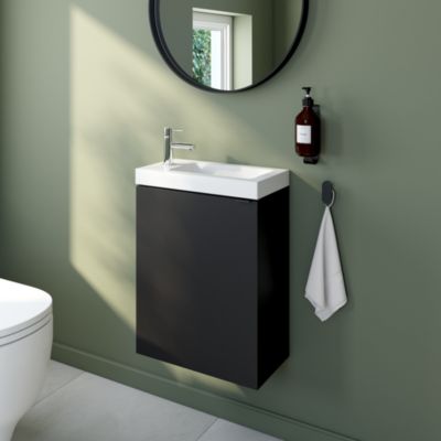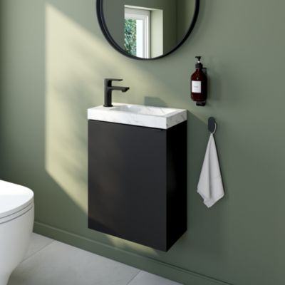 Meuble lave-mains suspendu noir mat l.44 cm Imandra + plan vasque blanc céramique Nira, GoodHome