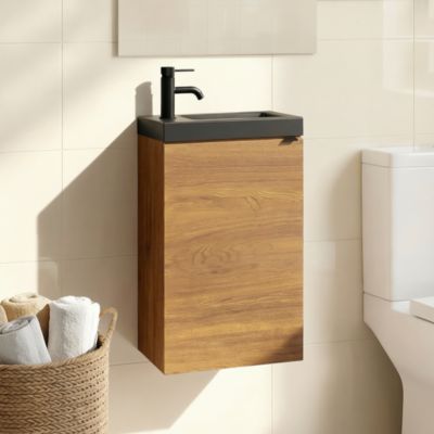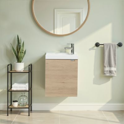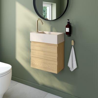 Meuble lave mains suspendu effet chêne l.44 cm Imandra + plan vasque blanc résine Beni, GoodHome