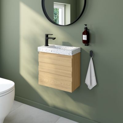 Meuble lave-mains effet chêne l.44 cm Imandra + plan vasque terrazzo, GoodHome