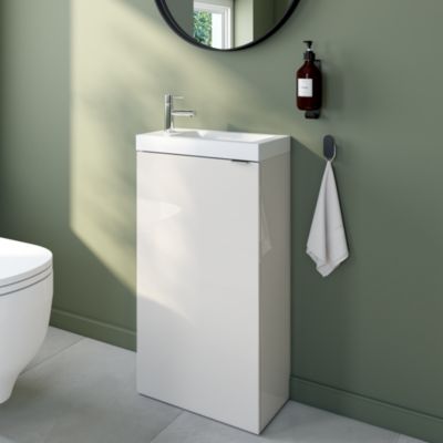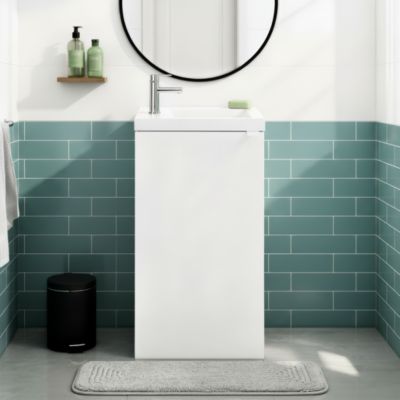 Meuble lave mains suspendu blanc brillant l.44 cm Imandra + plan vasque blanc résine Beni, GoodHome