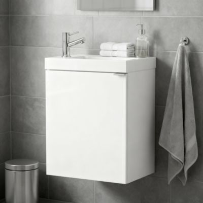 Meuble lave-mains suspendu blanc brillant l.44 cm Imandra + plan vasque blanc céramique Nira, GoodHome