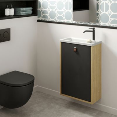 Meuble lave-mains suspendu noir mat l.44 cm Imandra + plan vasque noir céramique Nira, GoodHome