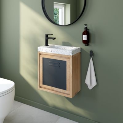 Ensemble meuble lave-mains à suspendre Indus chêne massif l.44 cm + plan vasque lave-mains terrazzo