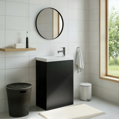 Meuble lave-mains suspendu noir mat l.44 cm Imandra + plan vasque blanc résine Beni, GoodHome