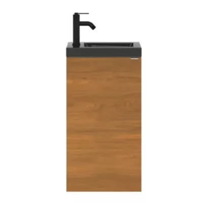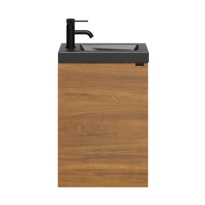 Meuble lave-mains suspendu effet noyer l.44 cm Imandra + plan vasque noir céramique Nira, GoodHome