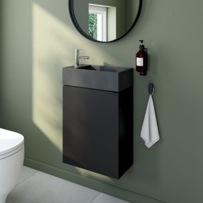 Meuble lave-mains suspendu noir mat l.44 cm Imandra + plan vasque béton gris, GoodHome