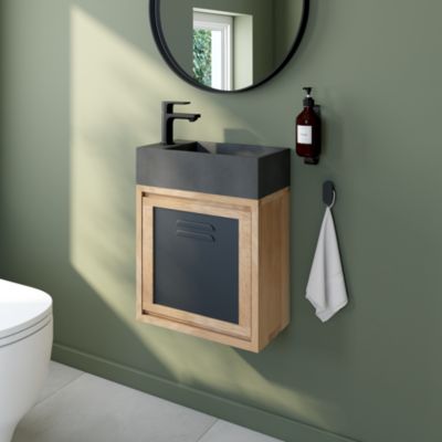 Ensemble meuble lave-mains à suspendre Indus chêne massif l.44 cm + plan vasque lave-mains béton gris