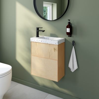 Ensemble meuble lave-mains Etty effet chêne l.44 cm + plan vasque lave-mains terrazzo