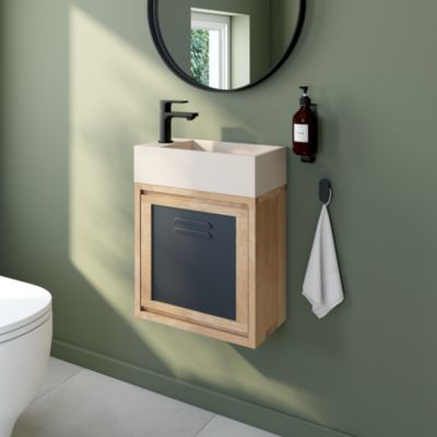Ensemble meuble lave-mains à suspendre Indus chêne massif l.44 cm + plan vasque lave-mains béton beige