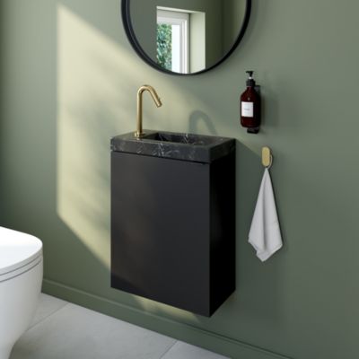 Meuble lave-mains suspendu noir mat l.44 cm Imandra + plan vasque effet marbre noir, GoodHome